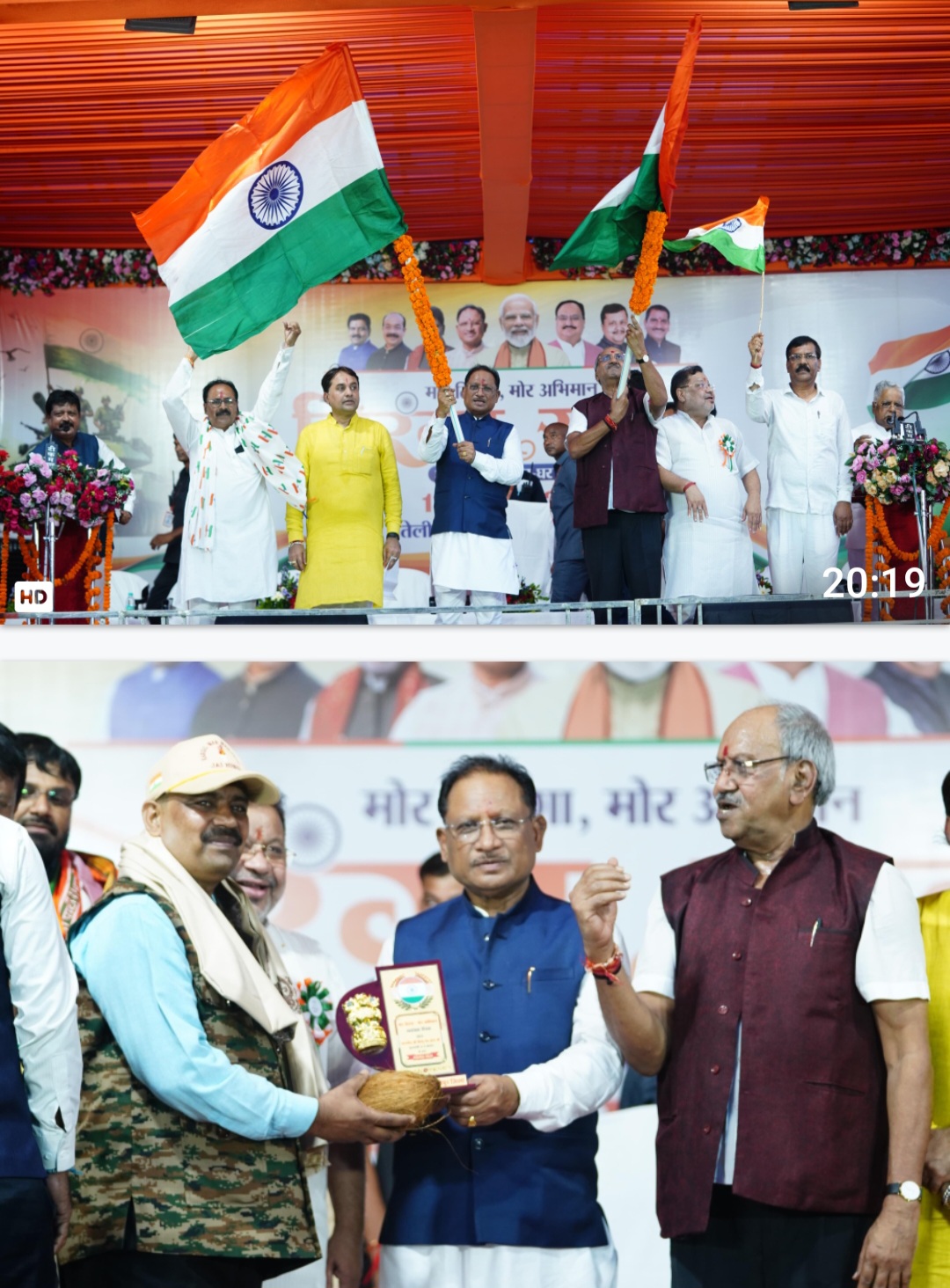 इस अवसर पर रायपुर सांसद बृजमोहन अग्रवाल ने कहा कि तिरंगा हमारा मान, अभियान और पहचान है। प्रधानमंत्री नरेंद्र मोदी के नेतृत्व में पूरे देश में तिरंगा यात्राएं निकाली जा रही हैं। उन्होंने कहा कि मुख्यमंत्री विष्णु देव साय के नेतृत्व में छत्तीसगढ़ प्रगति और खुशहाली की ओर अग्रसर है। यह तिरंगा यात्रा उन वीर सैनिकों को समर्पित है जिन्होंने इसकी रक्षा में अपना सर्वस्व न्योछावर किया। कार्यक्रम में विभिन्न सैन्य अभियानों में उल्लेखनीय योगदान देने वाले प्रदेश के भूतपूर्व सैनिकों को भी सम्मानित किया गया।