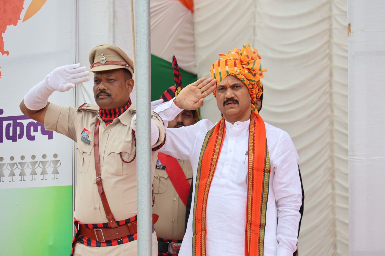स्वास्थ्य मंत्री श्याम बिहारी जायसवाल ने राष्ट्रीय ध्वज फहराया और परेड की सलामी ली