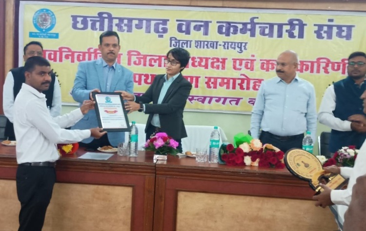 इस अवसर पर छत्तीसगढ़ वन कर्मचारी संगठन के जिला अध्यक्ष श्री सावन कुमार साहू एवं जिला कार्यकारिणी के अन्य सदस्यों को विधिवत शपथ दिलाई गई। सभी नवनियुक्त सदस्यों ने संगठन की गरिमा, कर्मचारियों के हितों की रक्षा तथा वन एवं पर्यावरण संरक्षण के प्रति निष्ठा से कार्य करने का संकल्प लिया। तत्पश्चात कार्यक्रम के मुख्य अतिथि श्री मनिवासागन एस ने नव निर्वाचित अध्यक्ष एवं सभी कार्यकारिणी सदस्यों कों बधाई देते हुए कहा की सभी कर्मचारी विभाग के कार्यों कों निष्ठा से निभाते हुए मिलकर कार्य करें, कार्यक्रम की अध्यक्षता कर रहे सतोविषा समाजदार ने भी सभी नव निर्वाचित सदस्यों कों बधाई दी। कार्यक्रम में वन विभाग के अधिकारी – कर्मचारी संगठन के पदाधिकारी सदस्यगण एवं बड़ी संख्या में कर्मचारी उपस्थित रहे। समारोह का वातावरण अनुशासन, एकजुटता एवं संगठनात्मक प्रतिबद्धता से परिपूर्ण रहा।