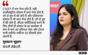 मुस्कान सुहाग बताती हैं कि CSEET में चार पेपर होते हैं. वहीं, एग्ज़ीक्यूटिव प्रोग्राम में सात पेपर होते हैं, जो दो ग्रुप में बंटे होते हैं और प्रोफ़ेशनल प्रोग्राम में भी सात पेपर होते हैं, जो दो ग्रुप में बँटे होते हैं.